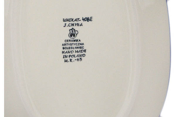 This Polish Pottery 10" Oval Platter - Crimson Poppies is handmade and handpainted by the Ceramika Artystyczna factory in Boleslawiec, Poland.