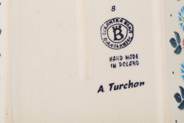 This Polish Pottery 10" Platter with Handles - Long-stemmed Beauties is handmade and handpainted by the Ceramika Bona factory in Boleslawiec, Poland.