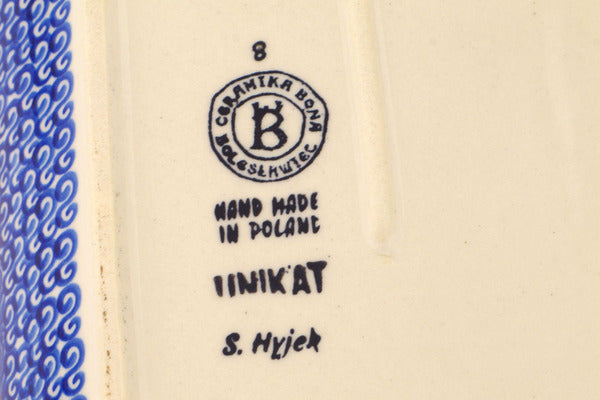 This Polish Pottery 10" Platter with Handles - Pastel Spring Wreath is handmade and handpainted by the Ceramika Bona factory in Boleslawiec, Poland.