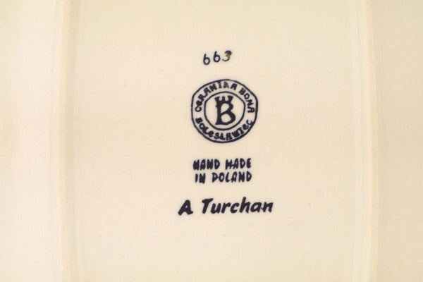This Polish Pottery 11" Platter - Blue Thistle Beauty is handmade and handpainted by the Ceramika Bona factory in Boleslawiec, Poland.