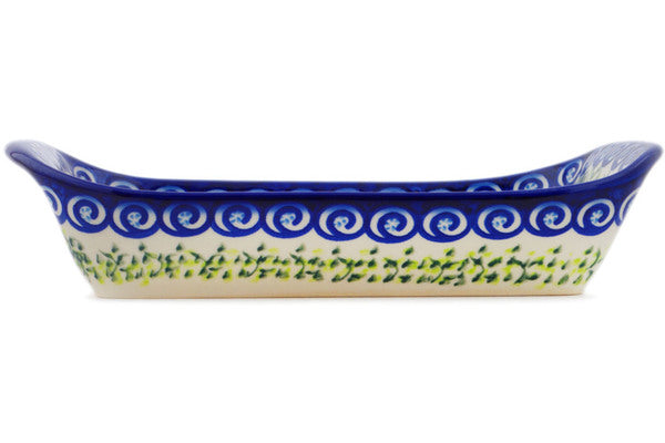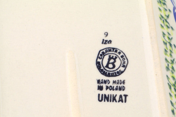 This Polish Pottery 11" Platter with Handles - Gorgeous Morning Glory is handmade and handpainted by the Ceramika Bona factory in Boleslawiec, Poland.