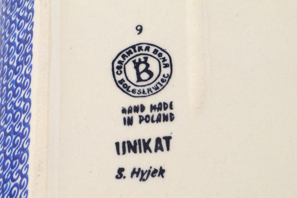 This Polish Pottery 11" Platter with Handles - Pastel Spring Wreath is handmade and handpainted by the Ceramika Bona factory in Boleslawiec, Poland.