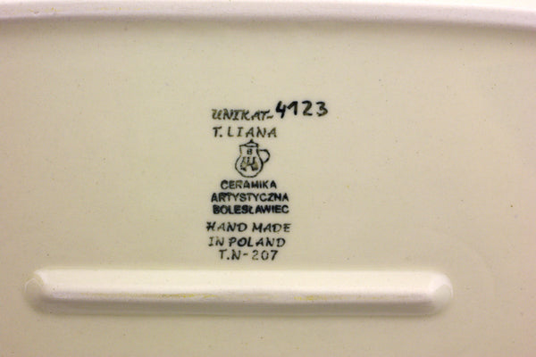 This Polish Pottery 13" Platter - Yellow Monarch Meadow is handmade and handpainted by the Ceramika Artystyczna factory in Boleslawiec, Poland.