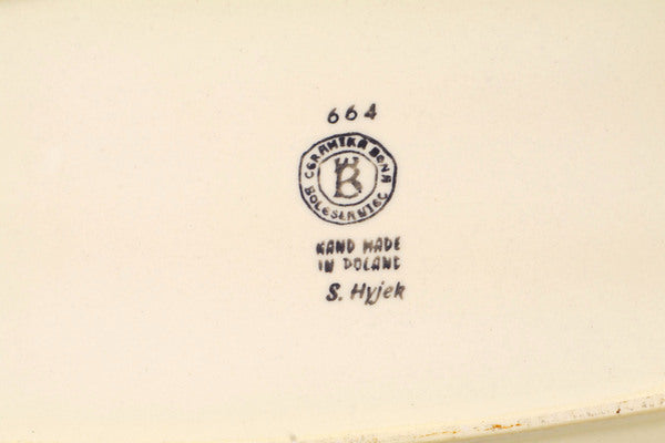 This Polish Pottery 14" Platter - Field Of Black Daisies is handmade and handpainted by the Ceramika Bona factory in Boleslawiec, Poland.