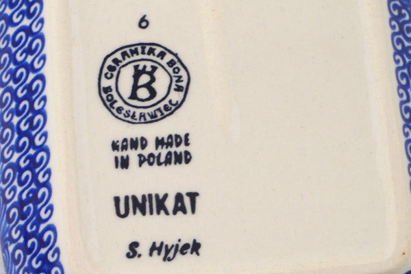 This Polish Pottery 7" Platter with Handles - Pastel Spring Wreath is handmade and handpainted by the Ceramika Bona factory in Boleslawiec, Poland.