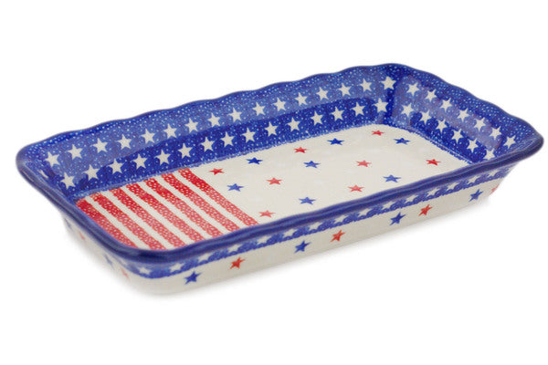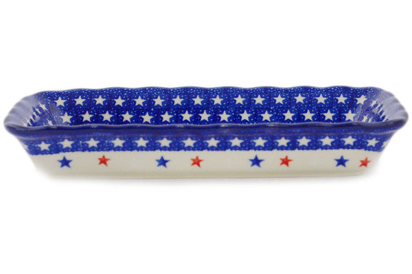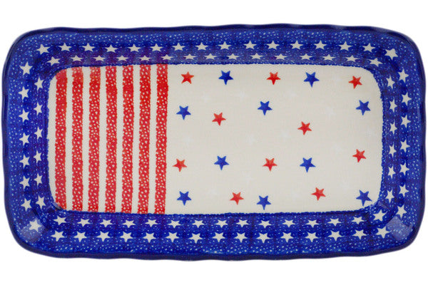 This Polish Pottery 9" Platter - American Stars And Stripes is handmade and handpainted by the Ceramika Artystyczna factory in Boleslawiec, Poland.
