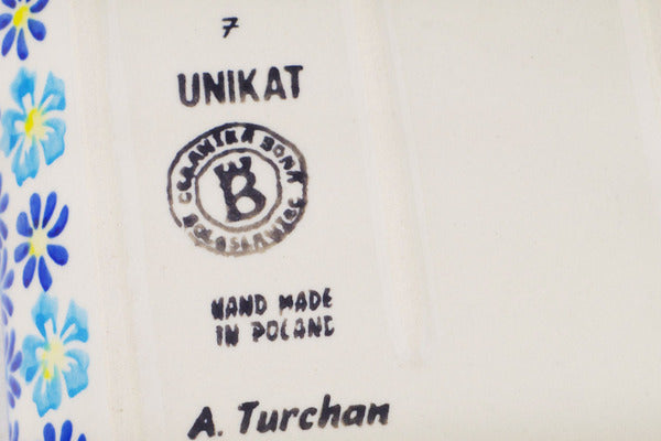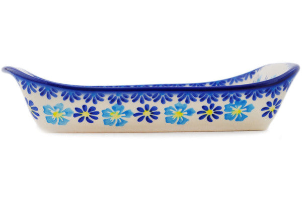 This Polish Pottery 9" Platter with Handles - Endless Summer is handmade and handpainted by the Ceramika Bona factory in Boleslawiec, Poland.
