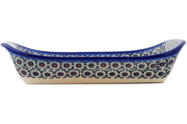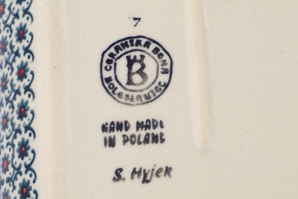 This Polish Pottery 9" Platter with Handles - Field Of Black Daisies is handmade and handpainted by the Ceramika Bona factory in Boleslawiec, Poland.