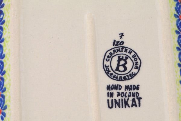 Ceramika Bona factory stamp | Polish Pottery HouseThis Polish Pottery 9" Platter with Handles - Metamorphosis is handmade and handpainted by the Ceramika Bona factory in Boleslawiec, Poland.