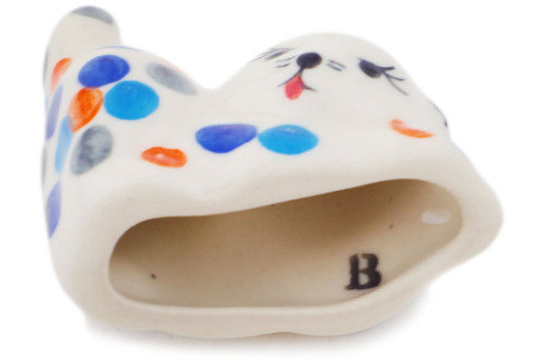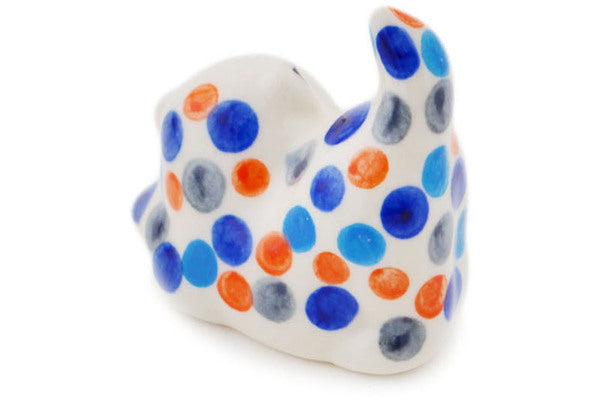 This Polish Pottery 2" Cat Figurine - Polka Dot Frenzy is handmade and handpainted by the Ceramika Bona factory in Boleslawiec, Poland.