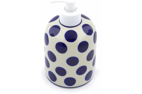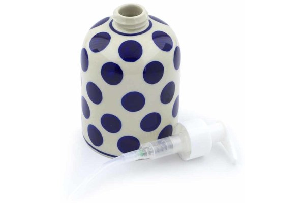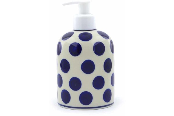 This Polish Pottery 5" Soap Dispenser - Bold Polka Dots is handmade and handpainted by the Ceramika Artystyczna factory in Boleslawiec, Poland.
