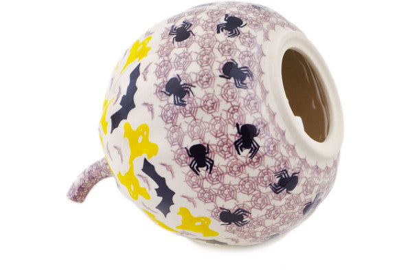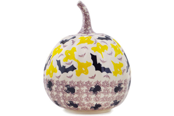 This Polish Pottery 6" Jack O Lantern Candle Holder - Haunted House is handmade and handpainted by the Manufaktura factory in Boleslawiec, Poland.