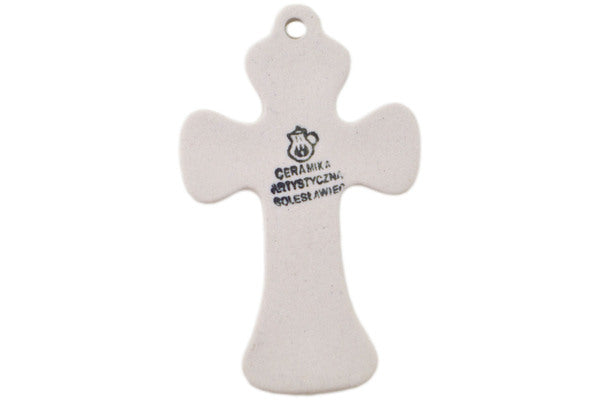 This Polish Pottery 3" Cross - Scarlet Pimpernel Flower is handmade and handpainted by the Ceramika Artystyczna factory in Boleslawiec, Poland.
