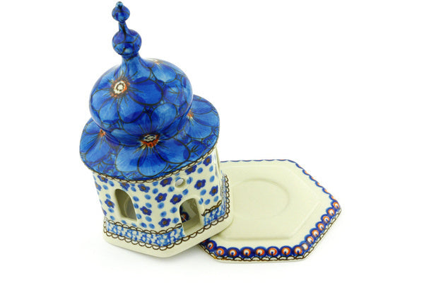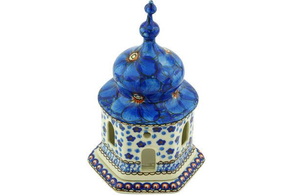 This Polish Pottery 7" Chapel Candle Holder - Cobalt Poppies is handmade and handpainted by the Ceramika Artystyczna factory in Boleslawiec, Poland.