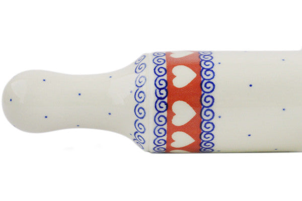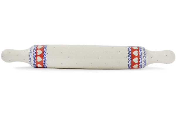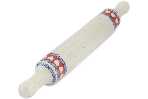 This Polish Pottery 18" Rolling Pin - Banner Of Hearts is handmade and handpainted by the Ceramika Artystyczna factory in Boleslawiec, Poland.