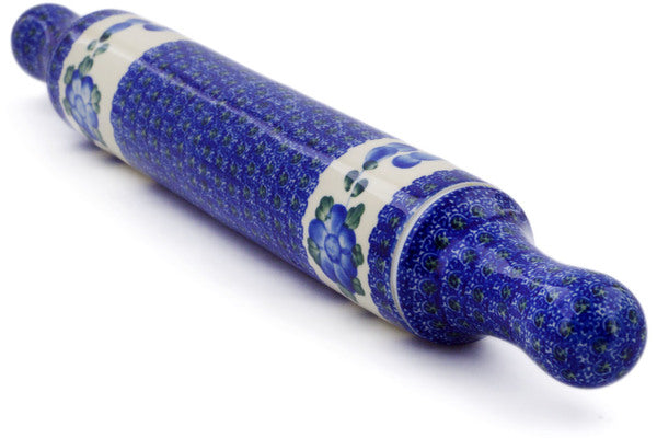 This Polish Pottery 18" Rolling Pin - Blue Poppies is handmade and handpainted by the Ceramika Artystyczna factory in Boleslawiec, Poland.