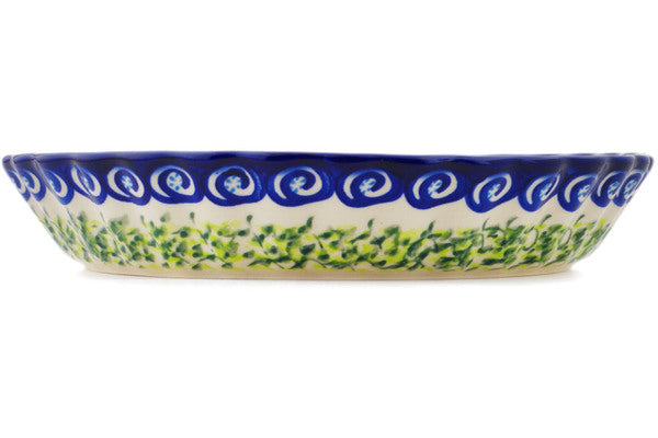 This Polish Pottery 10" Fluted Pie Dish - Gorgeous Morning Glory is handmade and handpainted by the Ceramika Bona factory in Boleslawiec, Poland.