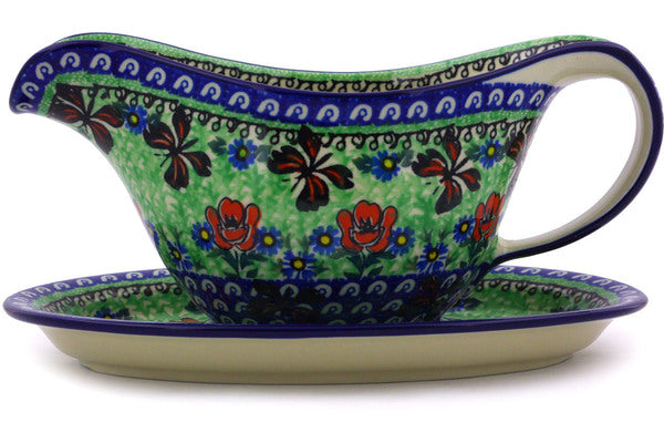 This Polish Pottery 20 oz Gravy Boat with Saucer - Brown Butterfly Garden is handmade and handpainted by the Ceramika Artystyczna factory in Boleslawiec, Poland.