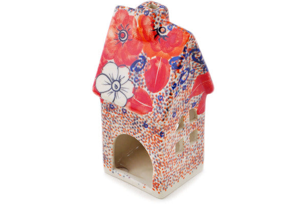 This Polish Pottery 6" House Shaped Candle Holder - Poppy Passion is handmade and handpainted by the Ceramika Bona factory in Boleslawiec, Poland.