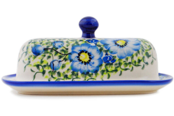 This Polish Pottery 7" Butter Dish - Gorgeous Morning Glory is handmade and handpainted by the Ceramika Bona factory in Boleslawiec, Poland.