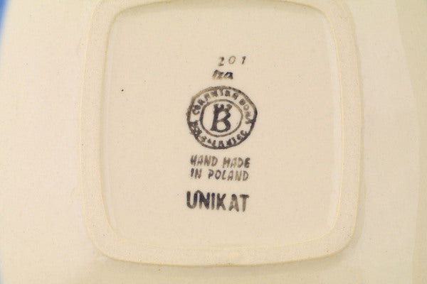 This Polish Pottery 7" Square Plate - Brilliant Butterfly Popp is handmade and handpainted by the Ceramika Bona factory in Boleslawiec, Poland.