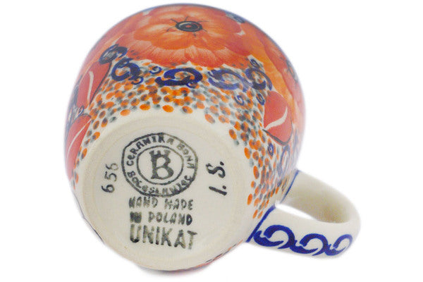 This Polish Pottery 8 oz Mug - Poppy Passion is handmade and handpainted by the Ceramika Bona factory in Boleslawiec, Poland.