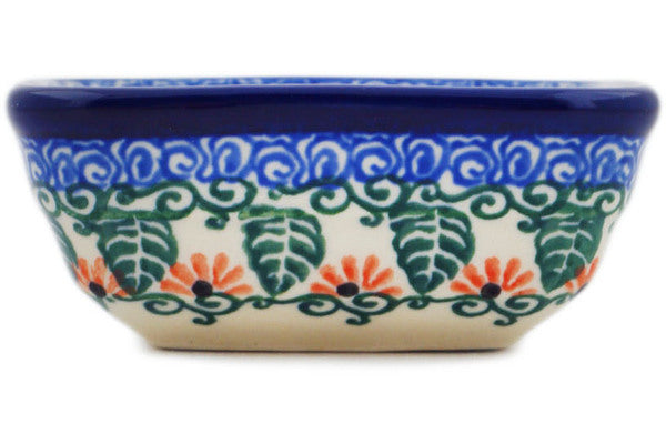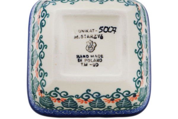 This Polish Pottery 3" Square Bowl - Pink Forget Me Not is handmade and handpainted by the Ceramika Artystyczna factory in Boleslawiec, Poland.
