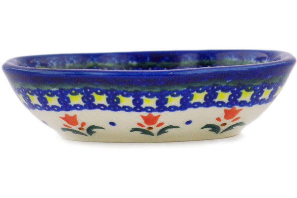 Ceramika Bona factory stamp | Polish Pottery HouseThis Polish Pottery 5" Soap Dish - Cocentric Tulips is handmade and handpainted by the Ceramika Bona factory in Boleslawiec, Poland.