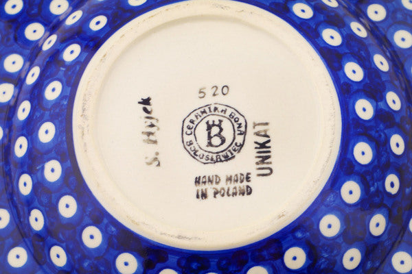 This Polish Pottery 9" Pasta Bowl - Tropical Peacock is handmade and handpainted by the Ceramika Bona factory in Boleslawiec, Poland.