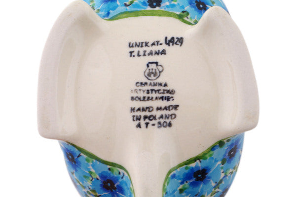 This Polish Pottery 6" Fish Shaped Jar - Blue Bachelor Buttons is handmade and handpainted by the Ceramika Artystyczna factory in Boleslawiec, Poland.