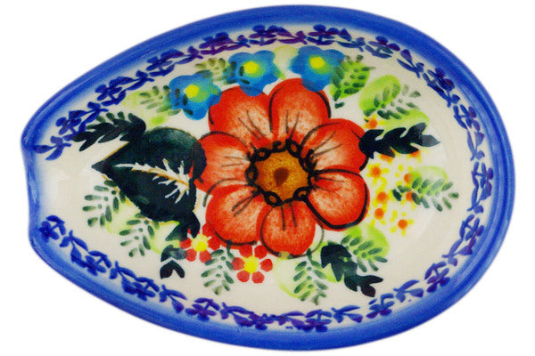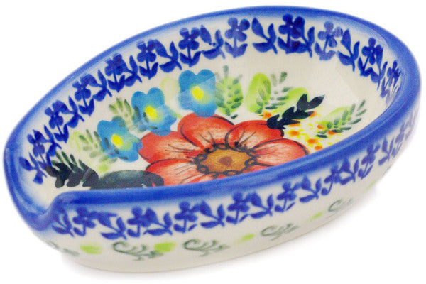 This Polish Pottery 5" Spoon Rest - Bold Red Poppies is handmade and handpainted by the Ceramika Bona factory in Boleslawiec, Poland.