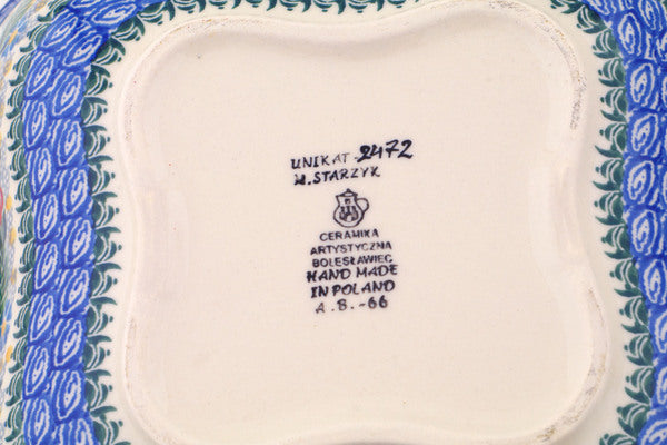 Ceramika Artystyczna factory stamp | Polish Pottery HouseThis Polish Pottery 11" Square Baker with Handles - Green Bird Meadow is handmade and handpainted by the Ceramika Artystyczna factory in Boleslawiec, Poland.
