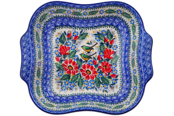 11" Square Baker with Handles - Green Bird Meadow