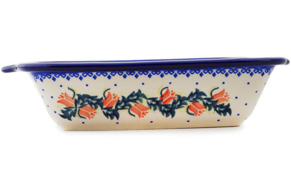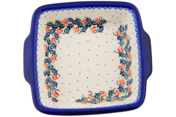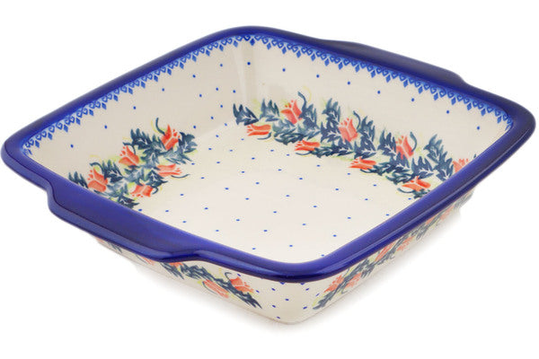 This Polish Pottery 12" Square Baker with Handles - California Poppies is handmade and handpainted by the Ceramika Bona factory in Boleslawiec, Poland.