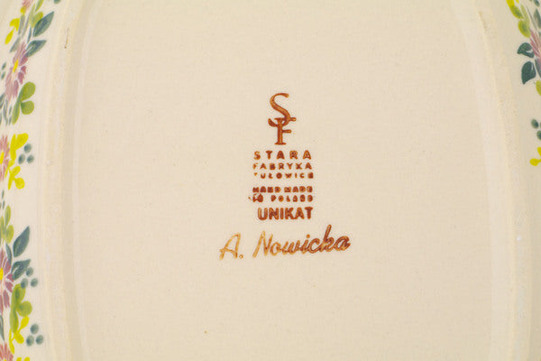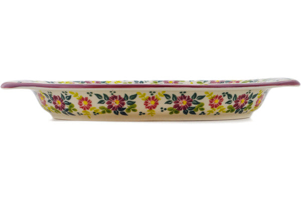 This Polish Pottery 13" Oval Dish - Marry Me Maroon is handmade and handpainted by the Stara Fabryka factory in Boleslawiec, Poland.