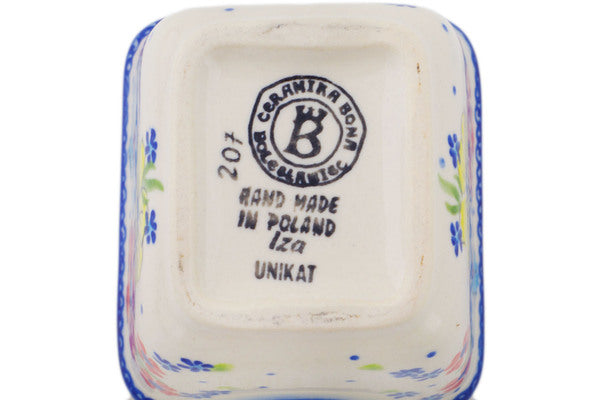 This Polish Pottery 3" Sugar Packet Holder - Country Three is handmade and handpainted by the Ceramika Bona factory in Boleslawiec, Poland.