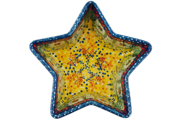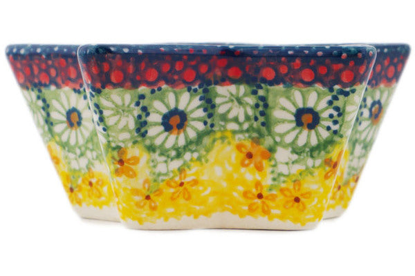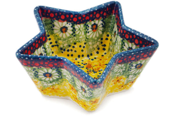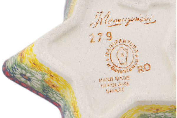 This Polish Pottery 5" Star Shaped Bowl - Sunshine Grotto is handmade and handpainted by the Manufaktura factory in Boleslawiec, Poland.