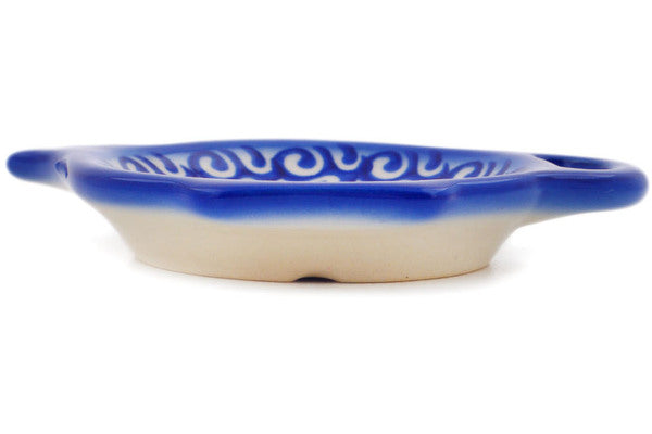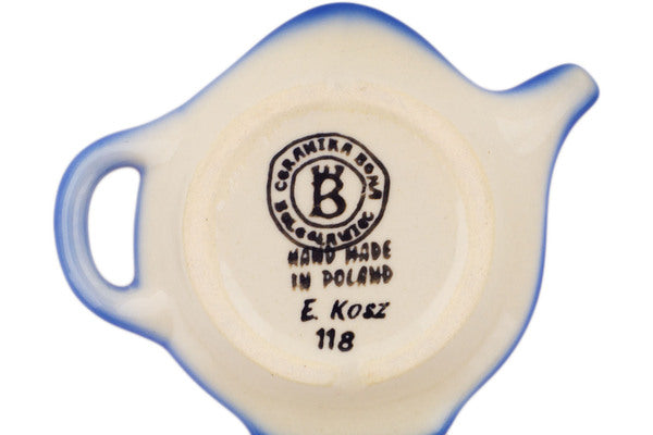 This Polish Pottery 4" Tea Bag or Lemon Plate - Blissful Daisy is handmade and handpainted by the Ceramika Bona factory in Boleslawiec, Poland.