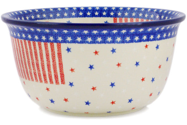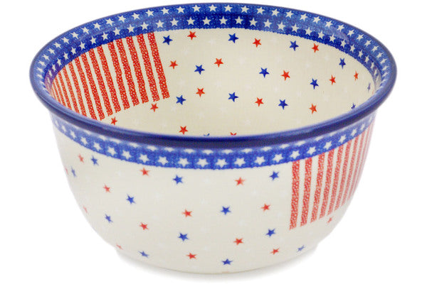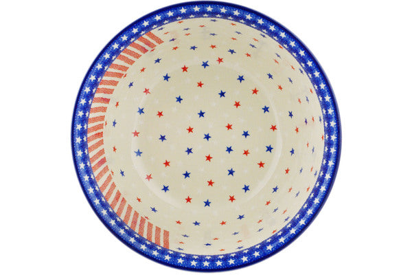 This Polish Pottery 11" Bowl - American Stars And Stripes is handmade and handpainted by the Ceramika Artystyczna factory in Boleslawiec, Poland.