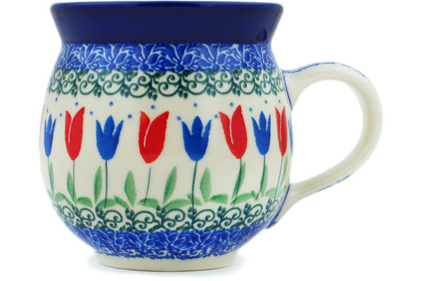 This Polish Pottery 12 oz Bubble Mug - Tulip Fever is handmade and handpainted by the Ceramika Artystyczna factory in Boleslawiec, Poland.