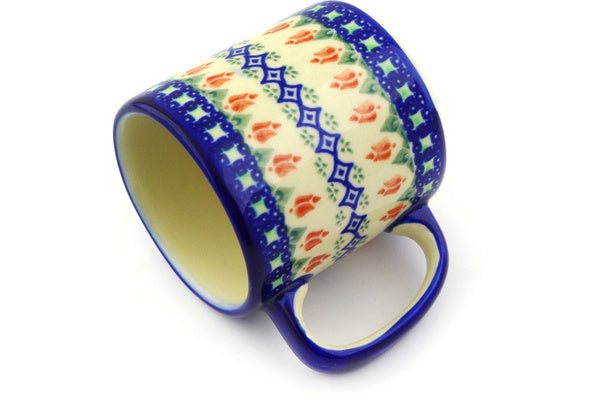 This Polish Pottery 13 oz Mug - Tulips And Diamonds is handmade and handpainted by the Ceramika Bona factory in Boleslawiec, Poland.