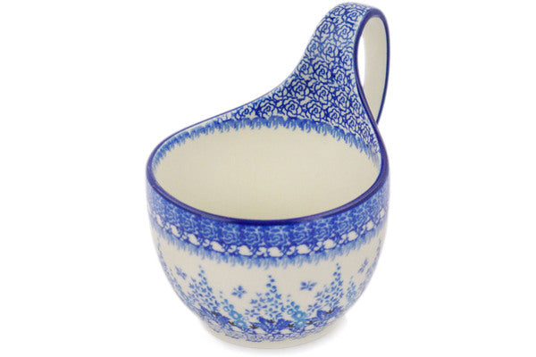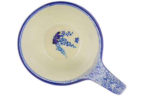 This Polish Pottery 6" Bowl with Loop-Handle - Powder Blue Butterflies is handmade and handpainted by the Ceramika Artystyczna factory in Boleslawiec, Poland.