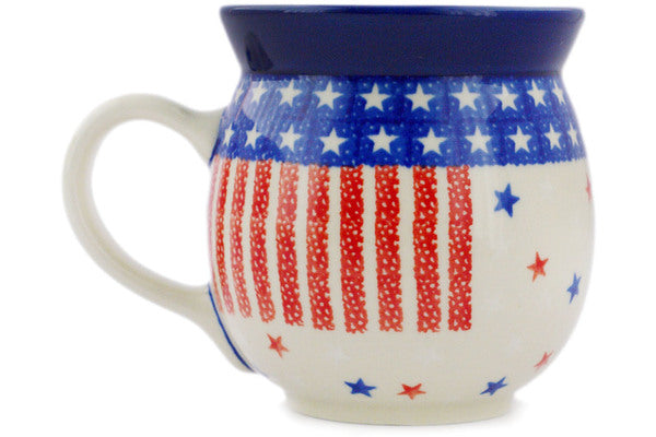 This Polish Pottery 16 oz Bubble Mug - American Stars And Stripes is handmade and handpainted by the Ceramika Artystyczna factory in Boleslawiec, Poland.