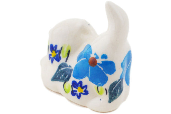 This Polish Pottery 2" Cat Figurine - Pansy Morning is handmade and handpainted by the Ceramika Bona factory in Boleslawiec, Poland.