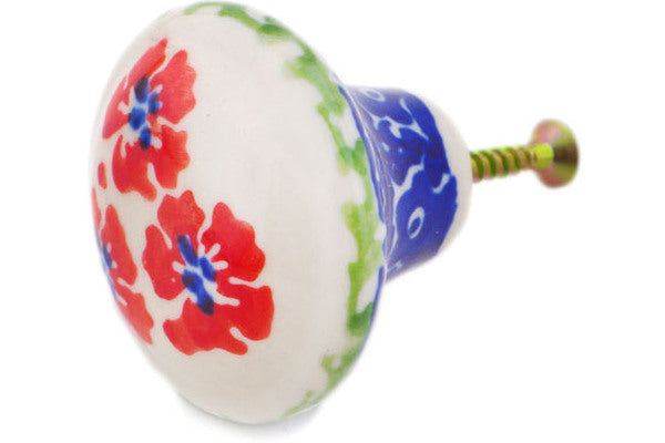 This Polish Pottery 2" Drawer Pull Knob - Midsummer Bloom is handmade and handpainted by the Ceramika Bona factory in Boleslawiec, Poland.