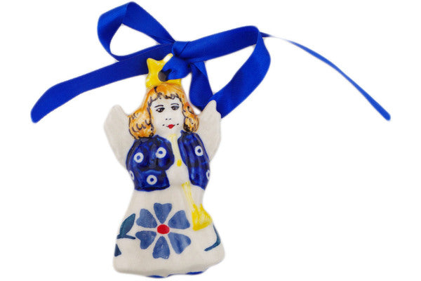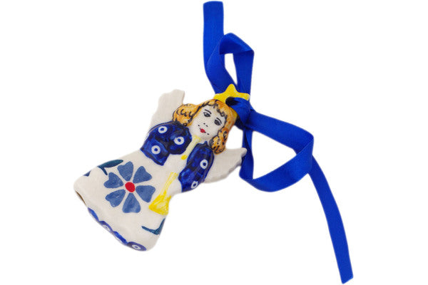 This Polish Pottery 3" Angel Ornament - Peacock Forget-Me-Not is handmade and handpainted by the Manufaktura factory in Boleslawiec, Poland.
