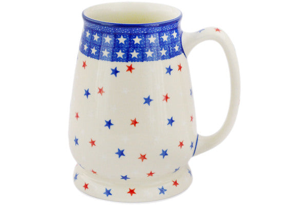 This Polish Pottery 34 oz Beer Mug - American Stars And Stripes is handmade and handpainted by the Ceramika Artystyczna factory in Boleslawiec, Poland.