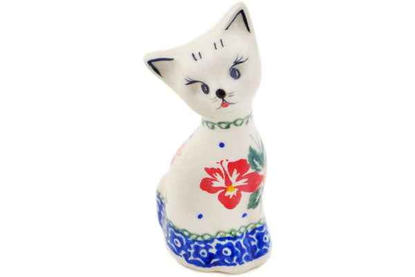 This Polish Pottery 4" Cat Figurine - Hibiscus Splendor is handmade and handpainted by the Ceramika Bona factory in Boleslawiec, Poland.