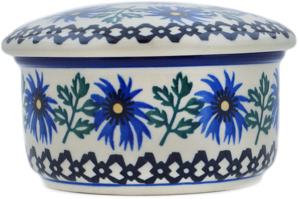 This Polish Pottery 4" Jar with Lid - Blue Chicory is handmade and handpainted by the Ceramika Artystyczna factory in Boleslawiec, Poland.