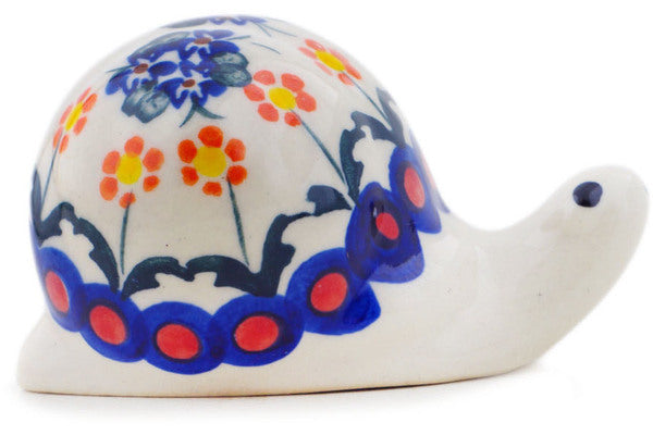 This Polish Pottery 4" Snail Figurine - Dark Blue Forget-Me-Not is handmade and handpainted by the Ceramika Bona factory in Boleslawiec, Poland.